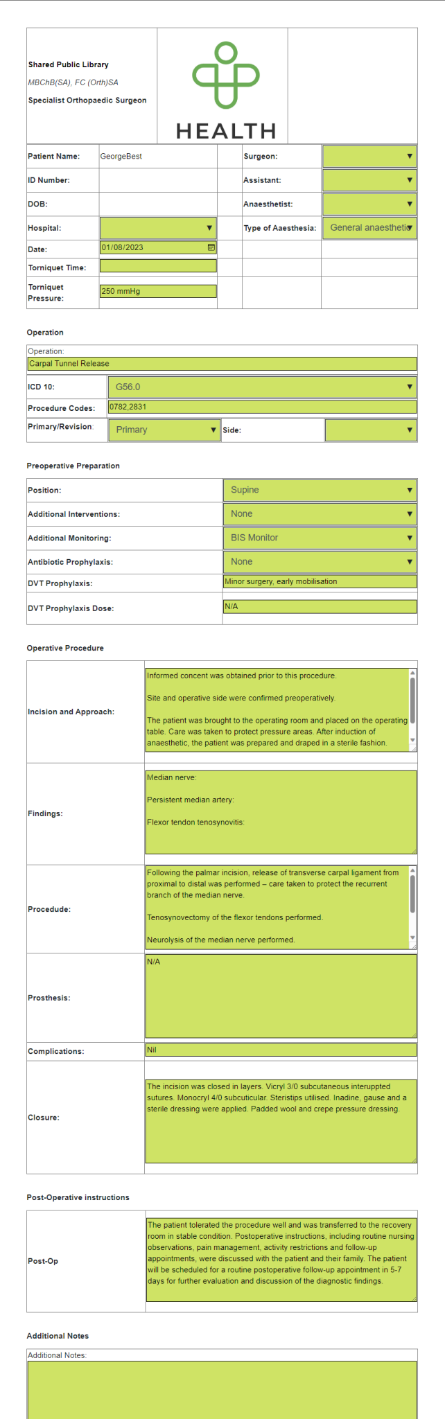 In Alchemed you can configure operation booking and completion forms with defaults populated. These forms then generate your operation documents based on the selections you make.